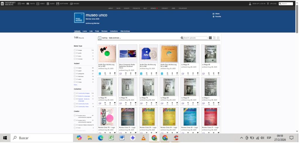 El Museo de la Comunicación Regional tiene su propio sitio donde almacena información y también utiliza otras plataformas para compartir los materiales preservados y digitalizados. Archive.org es una herramienta de acceso libre y gratuita que permite alojar los contenidos. La intención es siempre la misma, poder ganarle la batalla a la desaparición de los materiales para que las nuevas generaciones puden conocer como sus antecesores vivieron, que música escuchaban, que libros leyeron, que películas vieron, que hechos históricos debieron atravesar y cómo los afectó en su vida cotidiana.
